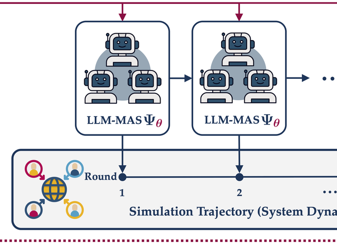 Service system performance depends on how participants respond to design choices, but modeling these responses is hard due to the complexity of human behavior. We introduce an LLM‑powered multi‑agent simulation (LLM‑MAS) framework for optimizing service operations. We pose the problem as stochastic optimization with decision‑dependent uncertainty: design choices are embedded in prompts and shape the distribution of outcomes from interacting LLM-powered agents. By embedding key numerical information in prompts and extracting it from LLM‑generated text, we model this uncertainty as a controlled Markov chain. We develop an on‑trajectory learning algorithm that, on a single simulation run, simultaneously constructs zeroth-order gradient estimates and updates design parameters to optimize steady-state performance. We also incorporate variance reduction techniques. In a sustainable supply chain application, our method outperforms benchmarks, including blackbox optimization and using LLMs as numerical solvers or as role‑playing system designers. A case study on optimal contest design with real behavioral data shows that LLM‑MAS is both as a cost‑effective evaluator of known designs and an exploratory tool that can uncover strong designs missed by traditional approaches.