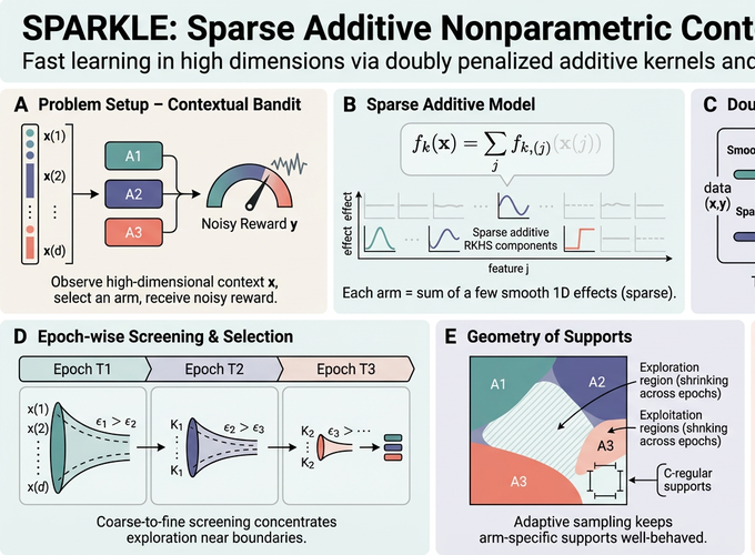 Personalized services are central to today’s digital economy, and their sequential decisions are often modeled as contextual bandits. Modern applications pose two main challenges: high-dimensional covariates and the need for nonparametric models to capture complex reward-covariate relationships. We propose SPARKLE, a novel contextual bandit algorithm based on a sparse additive reward model that addresses both challenges through (i) a doubly penalized estimator for nonparametric reward estimation and (ii) an epoch-based design with adaptive screening to balance exploration and exploitation. We prove a sublinear regret bound that grows only logarithmically in the covariate dimensionality; to our knowledge, this is the first such result for nonparametric contextual bandits with high-dimensional covariates. We also derive an information-theoretic lower bound, and the gap to the upper bound vanishes as the reward smoothness increases. Extensive experiments on synthetic data and real data from video recommendation and personalized medicine show strong performance in high-dimensional settings.